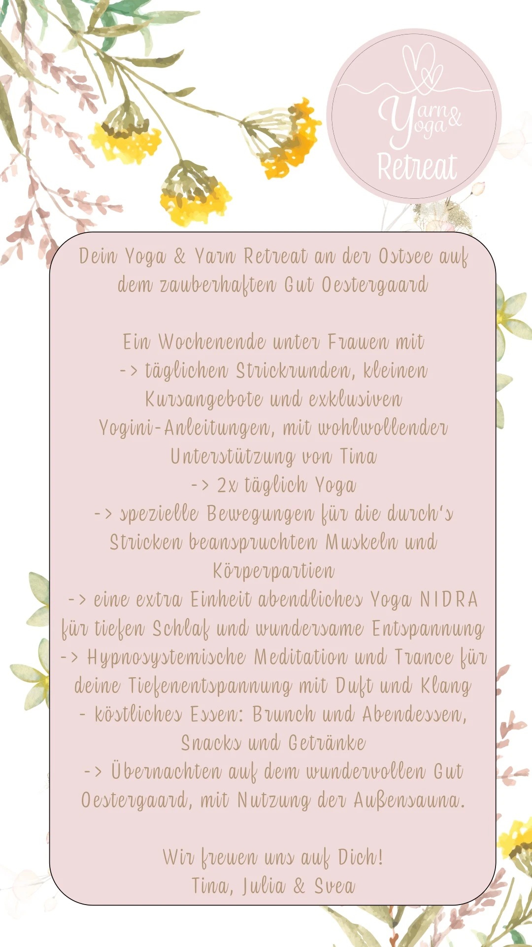 Wir treffen uns in einem schönen geräumigen Saal, mit großer Fensterfront und Blick auf das satte Grün des Waldes, mitten in Flensburg, gut zu erreichen. Dort richten wir unsere Plätze ein und kommen durch einige kurze Achtsamkeits- und Atemübungen in uns und in der Gruppe an. Danach folgt eine in Anlehnung an die Qualitäten der Jahreszeiten mal knackige, mal sanfte Dancing Yolates Session mit langem tiefen Shavasana, begleitet von hypnosystemischer Anleitung, wertschätzender Kommunikation, Klang und edlen Ölen. Sehr beliebt ist das Hygge- Buffet im Anschluss, bei dem wir uns erden, austauschen und ausklingen lassen. Du bist mir mit allen Anteilen herzlich willkommen!